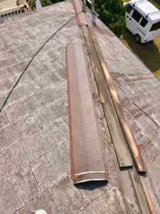 今回の現場でも、棟板金をめくってみると中の木下地が傷んでいる状態でした。